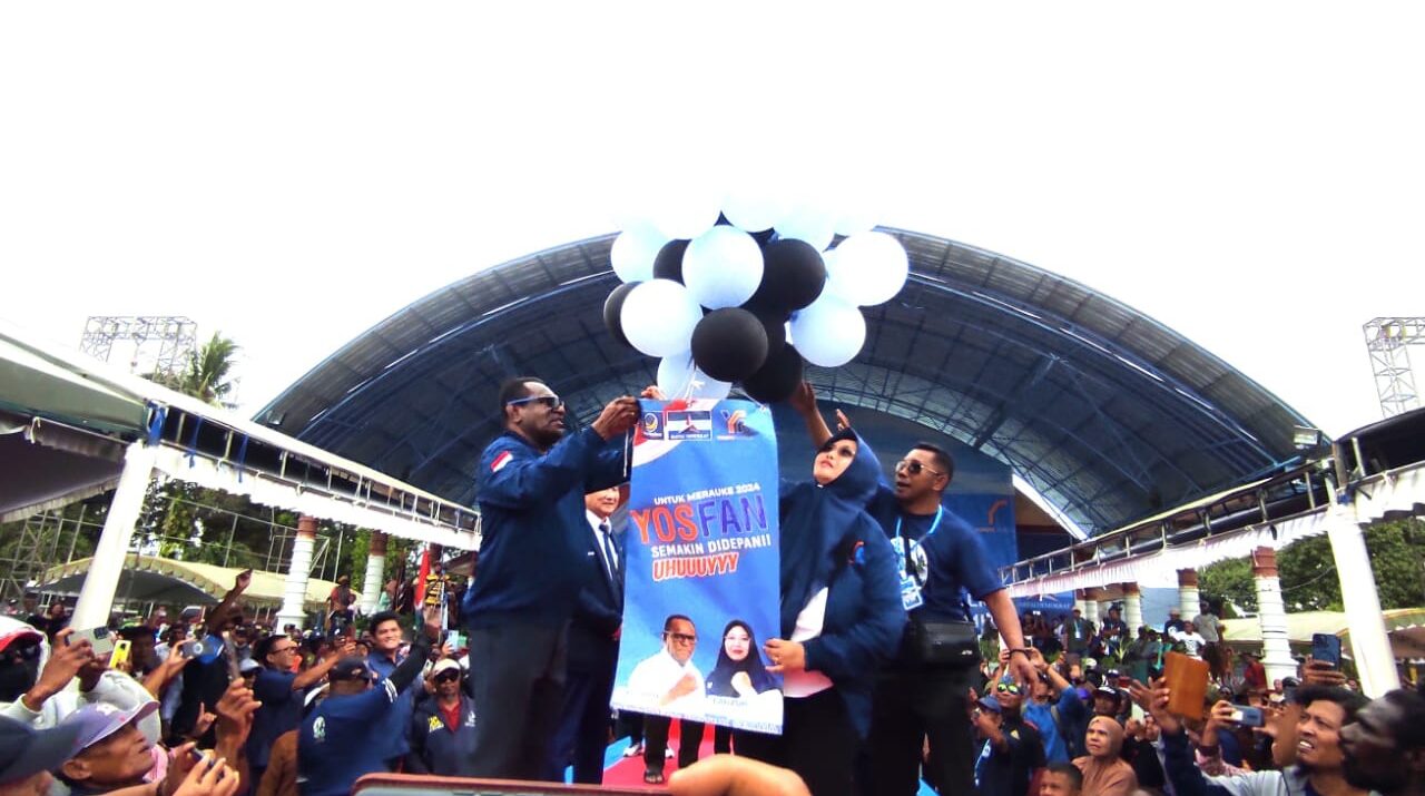 Metro Merauke – Warga tumpah ruah, menghadiri deklarasi koalisi partai politik pendukung Yosep Bladib Gebze dan Fauzun Nihayah (Yosfan), sebagai bakal pasangan calon bupati dan wakil bupati di Pilkada Merauke 2024.