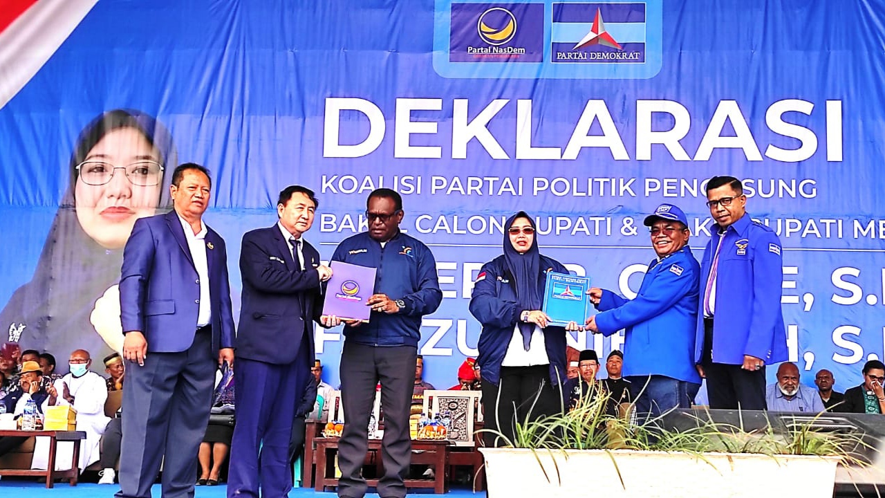 Deklarasi Paslon yang didukung Partai NasDem dan Demokrat ini yang pertama untuk Pilkada di Merauke, Kamis (22/08/2024).