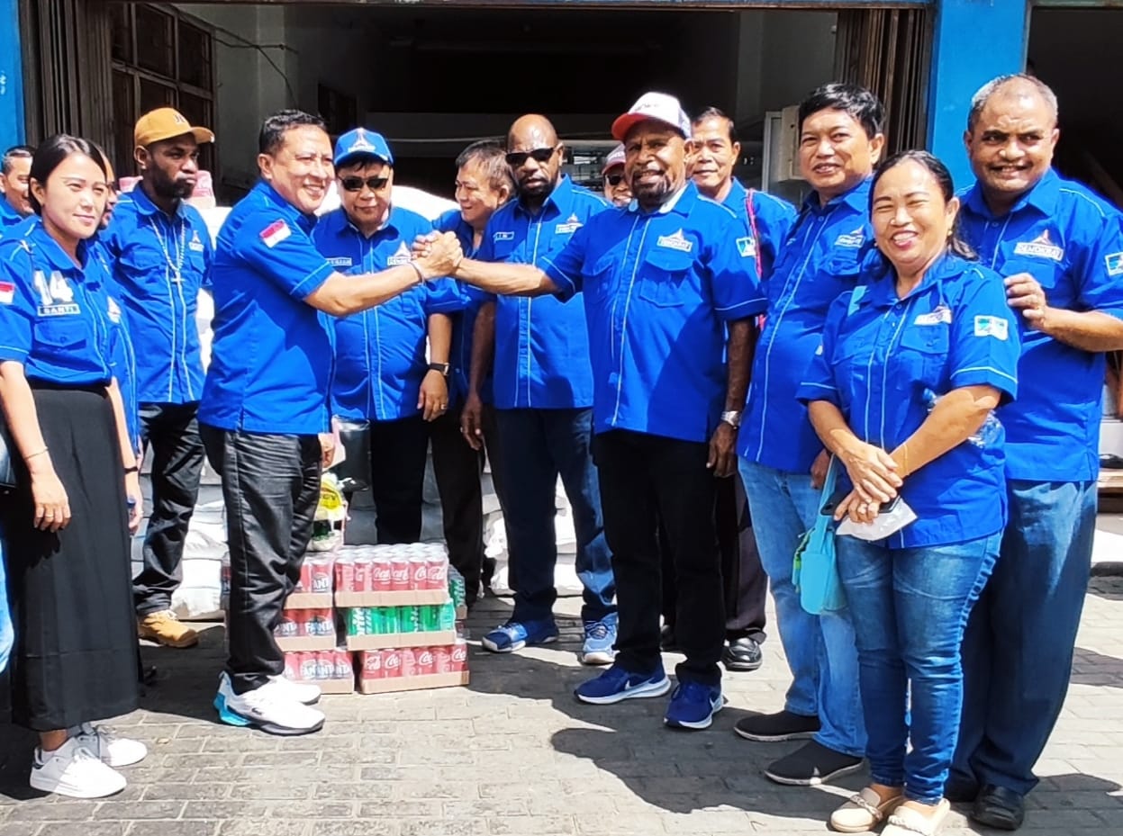 Penyerahan bantuan berupa dua ton beras dan 100 karton minuman kaleng itu berlangsung di Sekretariat Bappilu DPC Demokrat Kota Jayapura, di Tanah Hitam, Distrik Abepura, Sabtu (16/12/2023).
