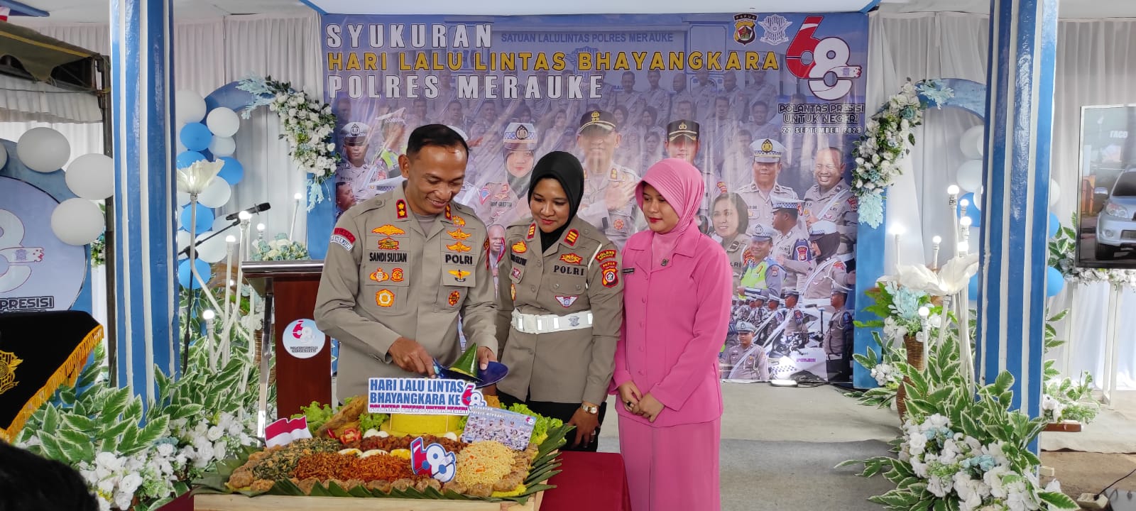 Metro Merauke – Puncak Hari Lalu Lintas Bhayangkara ke-68 di Merauke peringati dengan syukuran bersama dan diwarnai pemotongan tumpeng.