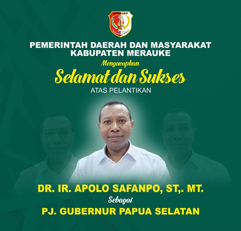 Selamat Atas Pelantikan Pj. Gubernur Papua Selatan Metro Merauke10 November 202210 November 2022 Pos terkaitSelamat Hari Kebangkitan Nasional 20 Mei 2023Selamat Memperingati Hari BuruhSelamat Hari Raya Idul Fitri 2023/1444 HSelamat Hari Raya Idul Fitri Mohon Maaf Lahir dan Batin 2023/1444 HSelamat Merayakan Hari Raya Paskah 2023Selamat Merayakan Hari Raya Paskah 2023SELAMAT HARI RAYA NYEPI 2023 TAHUN BARU SAKAIsra Mikraj Nabi Muhammad SAWHari Pers Nasional 2023Hari gizi dan makanan 2023SELAMAT TAHUN BARU IMLEK 2023Hari Guru Nasional dan HUT PGRI ke-77Selamat dan Sukses atas Pelantikan Dr. Ir. Apolo Safanpo, S.T., M.T Sebagai Penjabat Gubernur Papua SelatanHari Pahlawan 10 November 2022Hari Sumpah Pemuda 2022Sidang Sinode Ke X & Mupel Ke V ( GPI ) di Papua 2022HUT Ikatan Dokter Indonesia ( IDI ) 2022HUT GKI Di Tanah Papua 2022Hari Santri Nasional 2022Dirgahayu TNI yang ke-77 TahunHari Kelautan Nasional 2022Hari Anak Nasional 2022Hari Pramuka 2022Hari Raya Idul Adha 1443H/2022Dirgahayu Indonesia ke-77 2022Hari Veteran Nasional 2022Tahun Baru Islam 2022Hari Radio Republik Indonesia 2022Hari Bakti Pos & Telekomoniksi 2022Hari Palang Merah indonesia 2022