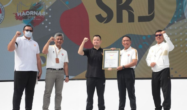 “MURI hari ini menyerahkan rekor dunia untuk SKJ Pelajar Terbanyak dan ini sudah dibuktikan dengan jumlah yang kurang lebih satu juta orang. Ini MURI mengapresiasinya sebagai Rekor Dunia,” kata Oemar.