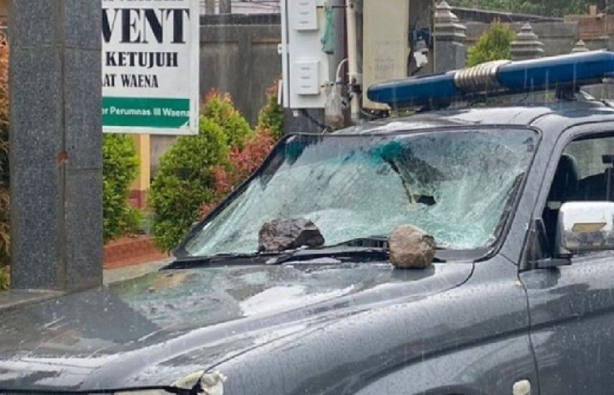 Selain dikeroyok, mobil operasional Polresta Jayapura Kota juga dilempari hingga rusak di bagian depan dan di dalam mobil banyak terdapat batu.