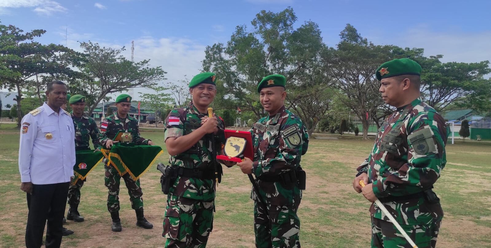 “Kalian juga telah memenuhi kriteria 4 parameter keberhasilan yang ditetapkan Pangdam XVII/Cenderawasih, tidak ada korban, tidak ada pelanggaran, antusiasme masyarakat di wilayah dalam mendukung pembangunan dan dicintai rakyat,” ujar Danrem Agus Widodo saat memimpin upacara pelepasan dan serah terima satgas pengamanan perbatasan RI-PNG, Jumat (11/08/2023).