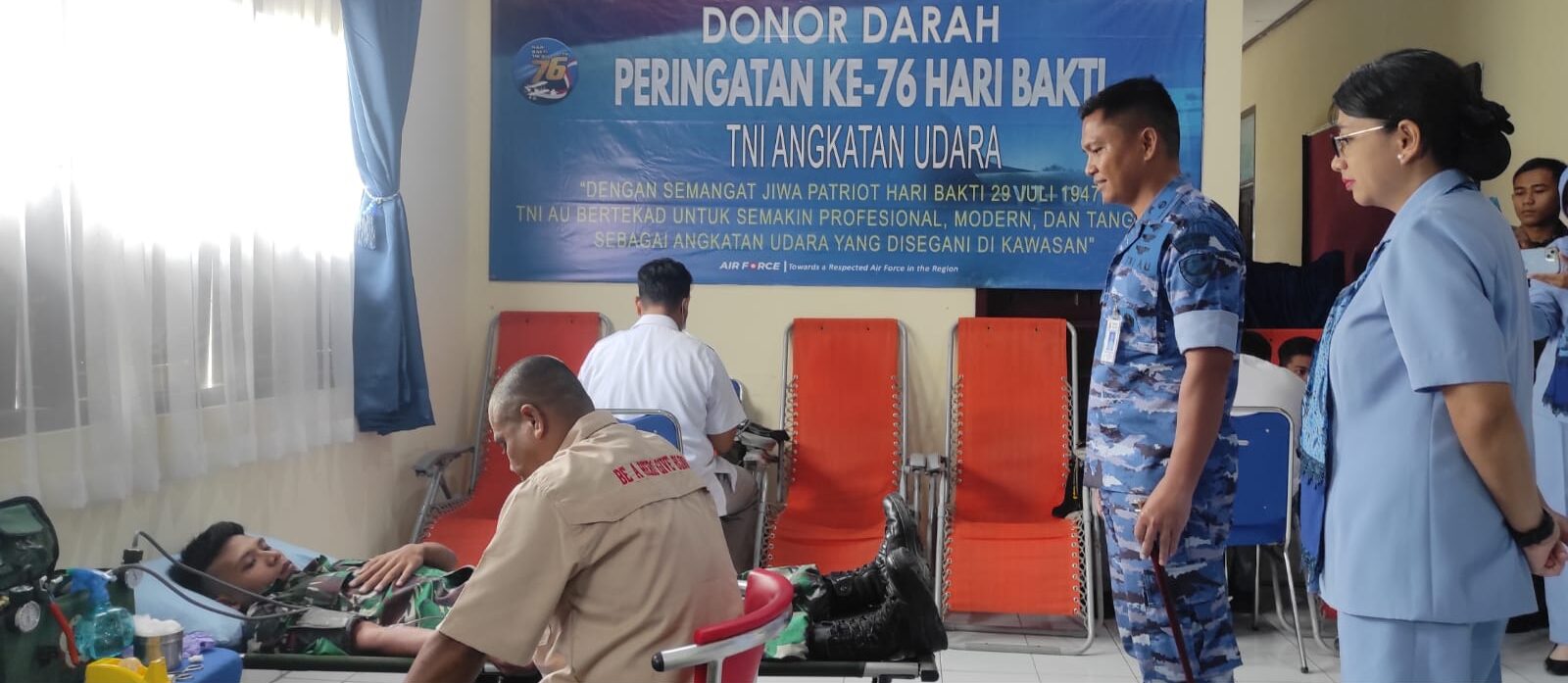 “Donor darah ini merupakan bagian dari bakti sosial dalam rangka Peringatan Hari Bakti Ke-76 TNI Angkatan Udara. Selain itu, telah dilaksanakan sunat massal,” ujar Senop Amos Sulle kepada wartawan disela-sela kegiatan.