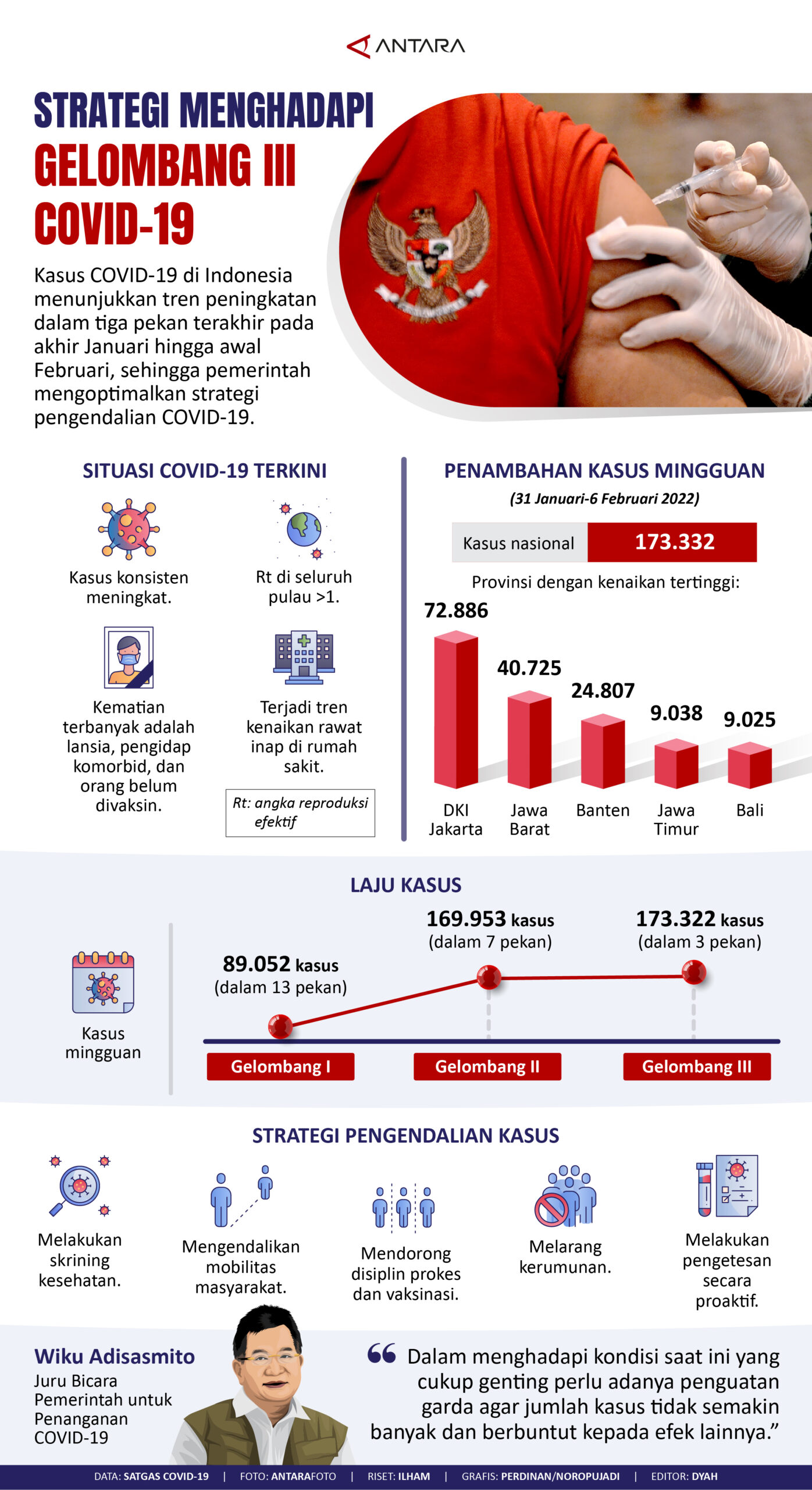 Metro Merauke – Kasus COVID-19 di Indonesia menunjukkan tren peningkatan dalam tiga pekan terakhir pada akhir Januari hingga awal Februari 2022, sehingga pemerintah mengoptimalkan strategi pengendalian COVID-19. (Antara)
