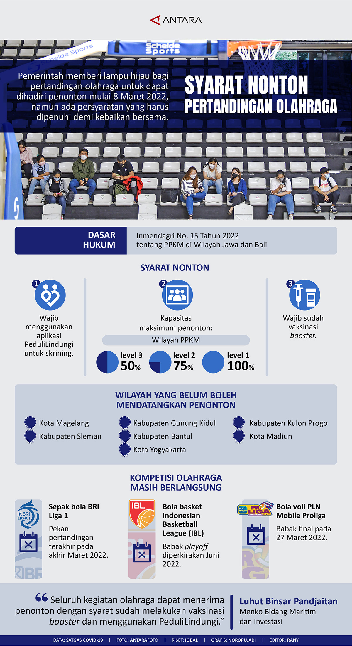 Syarat Nonton Pertandingan Olahraga Redaksi Metro15 Maret 202214 Maret 2022 Metro Merauke – Pemerintah memberi lampu hijau bagi pertandingan olahraga untuk dapat dihadiri penonton mulai 8 Maret 2022, namun ada persyaratan yang harus dipenuhi demi kebaikan bersama. (Antara) Pos terkaitSelamat Hari Kebangkitan Nasional 20 Mei 2023Selamat Memperingati Hari BuruhSelamat Hari Raya Idul Fitri 2023/1444 HSelamat Hari Raya Idul Fitri Mohon Maaf Lahir dan Batin 2023/1444 HSelamat Merayakan Hari Raya Paskah 2023Selamat Merayakan Hari Raya Paskah 2023SELAMAT HARI RAYA NYEPI 2023 TAHUN BARU SAKAIsra Mikraj Nabi Muhammad SAWHari Pers Nasional 2023Hari gizi dan makanan 2023SELAMAT TAHUN BARU IMLEK 2023Hari Guru Nasional dan HUT PGRI ke-77Selamat dan Sukses atas Pelantikan Dr. Ir. Apolo Safanpo, S.T., M.T Sebagai Penjabat Gubernur Papua SelatanSelamat Atas Pelantikan Pj. Gubernur Papua SelatanHari Pahlawan 10 November 2022Hari Sumpah Pemuda 2022Sidang Sinode Ke X & Mupel Ke V ( GPI ) di Papua 2022HUT Ikatan Dokter Indonesia ( IDI ) 2022HUT GKI Di Tanah Papua 2022Hari Santri Nasional 2022Dirgahayu TNI yang ke-77 TahunHari Kelautan Nasional 2022Hari Anak Nasional 2022Hari Pramuka 2022Hari Raya Idul Adha 1443H/2022Dirgahayu Indonesia ke-77 2022Hari Veteran Nasional 2022Tahun Baru Islam 2022Hari Radio Republik Indonesia 2022Hari Bakti Pos & Telekomoniksi 2022