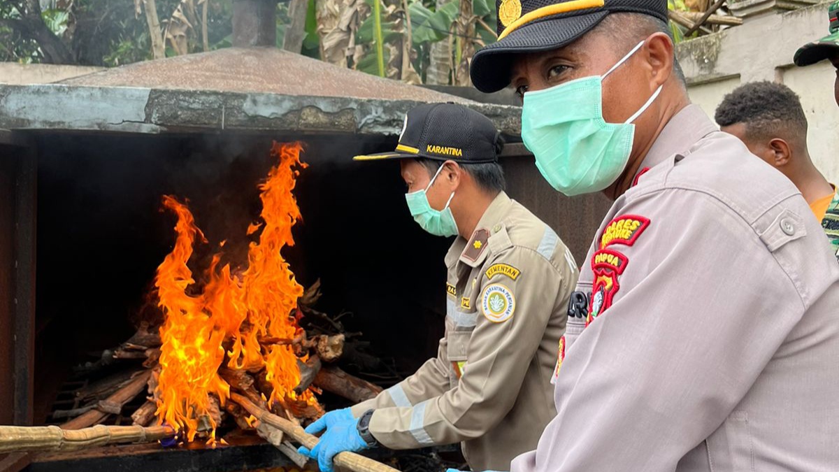 Metro Merauke – Karantina Pertanian Merauke melalui wilayah kerja PLBN Sota melakukan pemusnahan daging rusa asal Papua New Guinea (PNG) di insinerator Karantina.