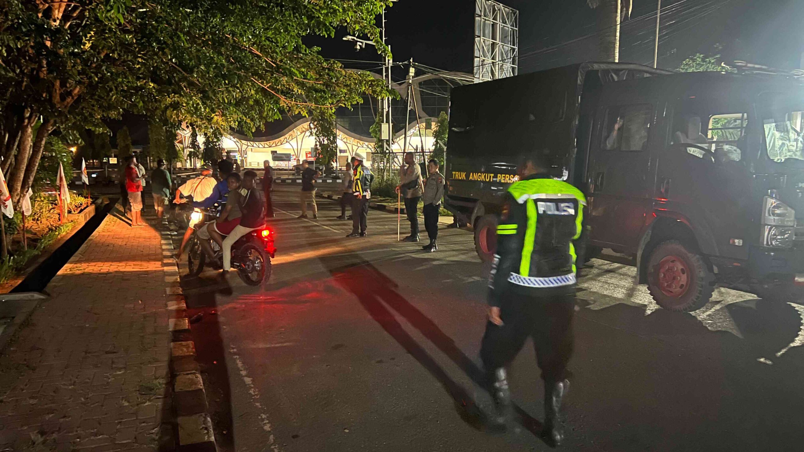 Selain memantau situasi jalanan, petugas juga membubarkan kerumunan anak muda di Jalan PGT Spadem sebagai langkah antisipasi gangguan keamanan.
