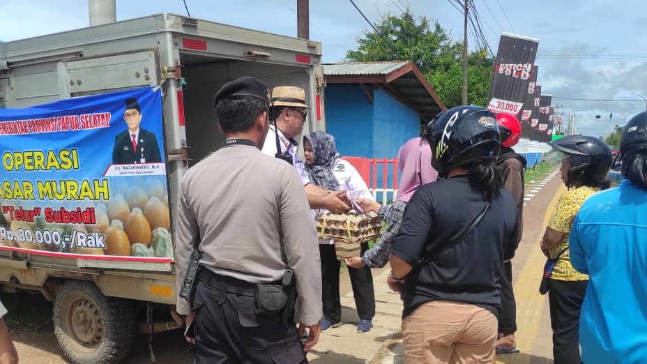 Warga Merauke dengan antusias membeli telur yang diketahui stoknya mulai langka di pasaran. Kegiatan tersebut (pasar murah) dinilai sangat membantu warga di tengah harga bahan pokok merangkak naik jelang hari besar keagamaan dan tahun baru.