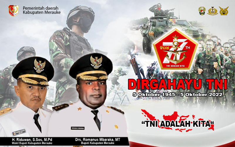 Dirgahayu TNI yang ke-77 Tahun Metro Merauke5 Oktober 20225 Oktober 2022 TNI Kuat, Hebat, Profesional, Siap Mewujudkan Indonesia yang Berdaulat, Mandiri dan Berkepribadian. Pos terkaitSelamat Hari Kebangkitan Nasional 20 Mei 2023Selamat Memperingati Hari BuruhSelamat Hari Raya Idul Fitri 2023/1444 HSelamat Hari Raya Idul Fitri Mohon Maaf Lahir dan Batin 2023/1444 HSelamat Merayakan Hari Raya Paskah 2023Selamat Merayakan Hari Raya Paskah 2023SELAMAT HARI RAYA NYEPI 2023 TAHUN BARU SAKAIsra Mikraj Nabi Muhammad SAWHari Pers Nasional 2023Hari gizi dan makanan 2023SELAMAT TAHUN BARU IMLEK 2023Hari Guru Nasional dan HUT PGRI ke-77Selamat dan Sukses atas Pelantikan Dr. Ir. Apolo Safanpo, S.T., M.T Sebagai Penjabat Gubernur Papua SelatanSelamat Atas Pelantikan Pj. Gubernur Papua SelatanHari Pahlawan 10 November 2022Hari Sumpah Pemuda 2022Sidang Sinode Ke X & Mupel Ke V ( GPI ) di Papua 2022HUT Ikatan Dokter Indonesia ( IDI ) 2022HUT GKI Di Tanah Papua 2022Hari Santri Nasional 2022Hari Kelautan Nasional 2022Hari Anak Nasional 2022Hari Pramuka 2022Hari Raya Idul Adha 1443H/2022Dirgahayu Indonesia ke-77 2022Hari Veteran Nasional 2022Tahun Baru Islam 2022Hari Radio Republik Indonesia 2022Hari Bakti Pos & Telekomoniksi 2022Hari Palang Merah indonesia 2022