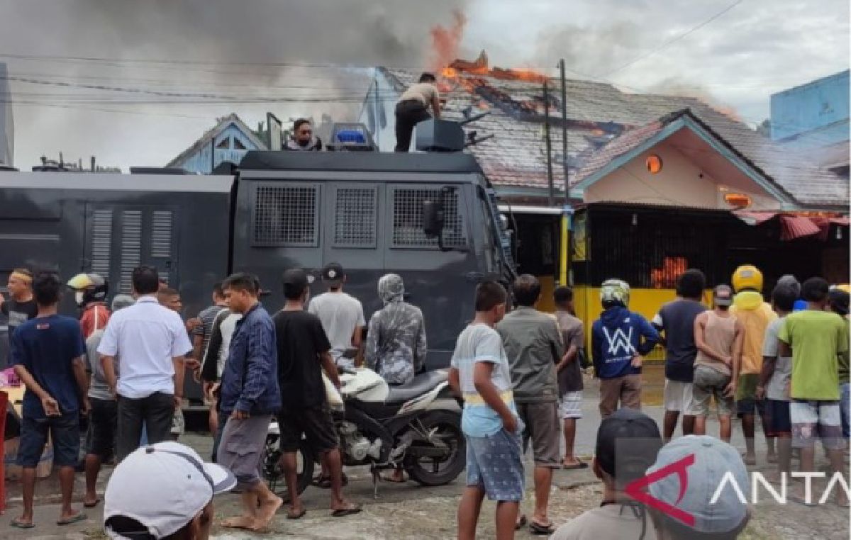 Toko Jihan yang menjual aneka bahan kebutuhan pokok rata dengan tanah dan hanya meninggalkan puing-puing setelah sekitar satu jam api berkobar di lokasi itu.