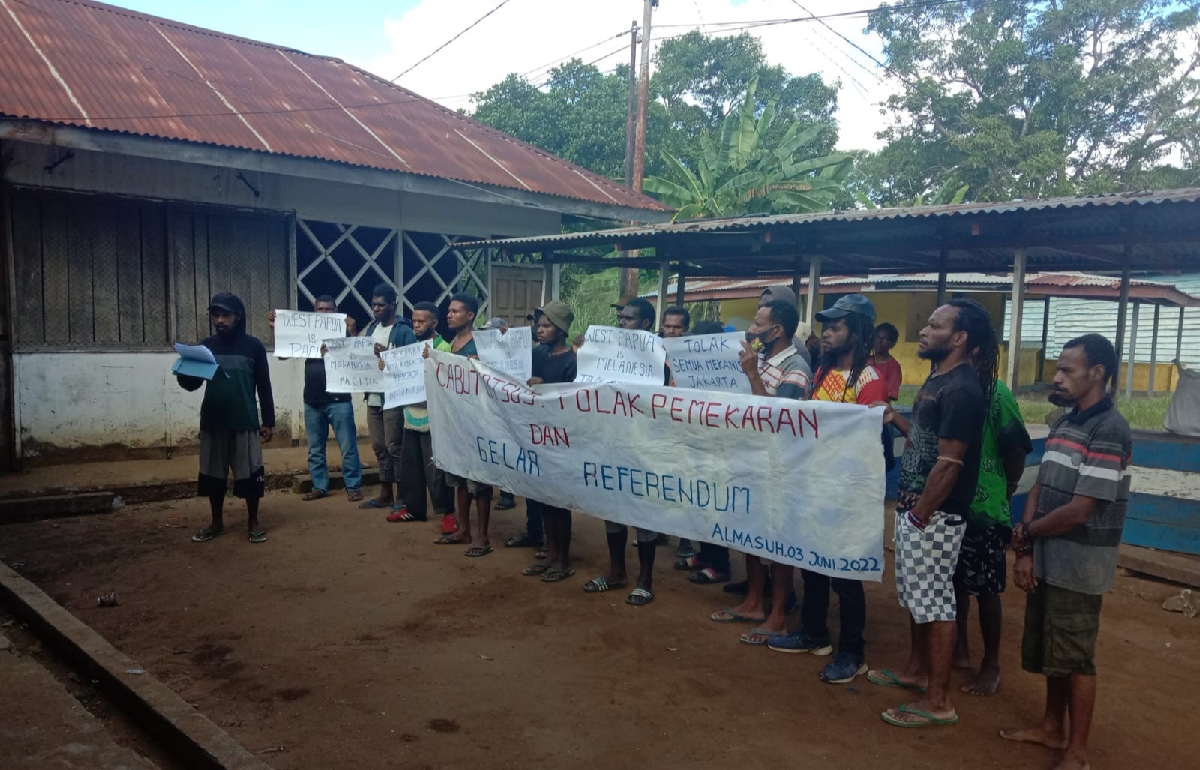 “Kelompok tersebut juga meminta digelarnya referendum dengan upaya mengelar spanduk yang berisikan menolak DOB di Papua, ” terang Pandu.