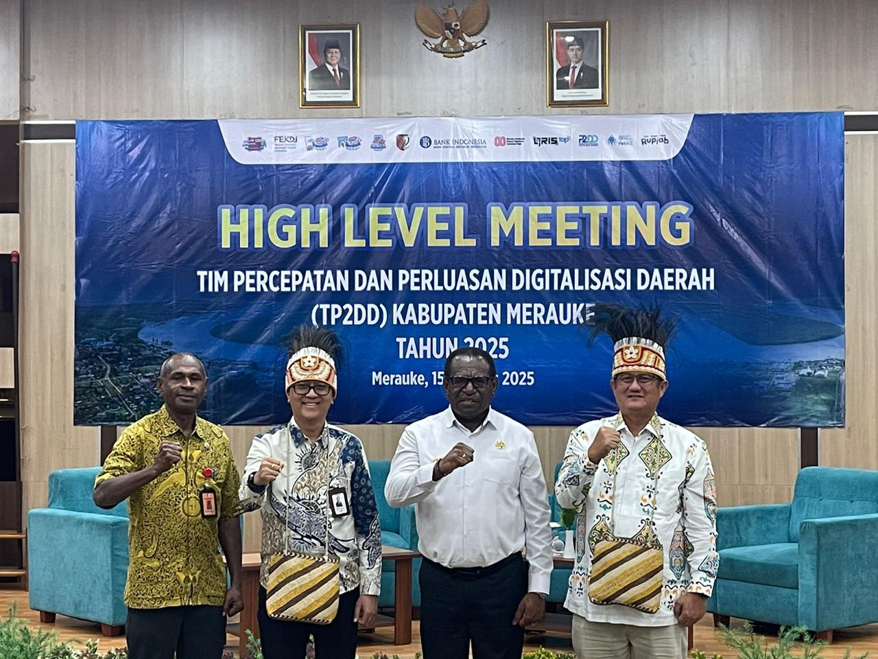 Metro Merauke – Untuk pertama kalinya Tim Percepatan dan Perluasan Digitalisasi Daerah (TP2DD) Kabupaten Merauke, Papua Selatan, menggelar High Level Meeting. Kegiatan tersebut dihadiri Staf Ahli Bupati Bidang Ekonomi, Beny Malik, Kantor Perwakilan Wilayah Bank Indonesia (BI) Papua, Bank Papua, Kepala Organisasi Perangkat Daerah (OPD) dan instansi terkait lainnya, Jumat (15/08/2025).