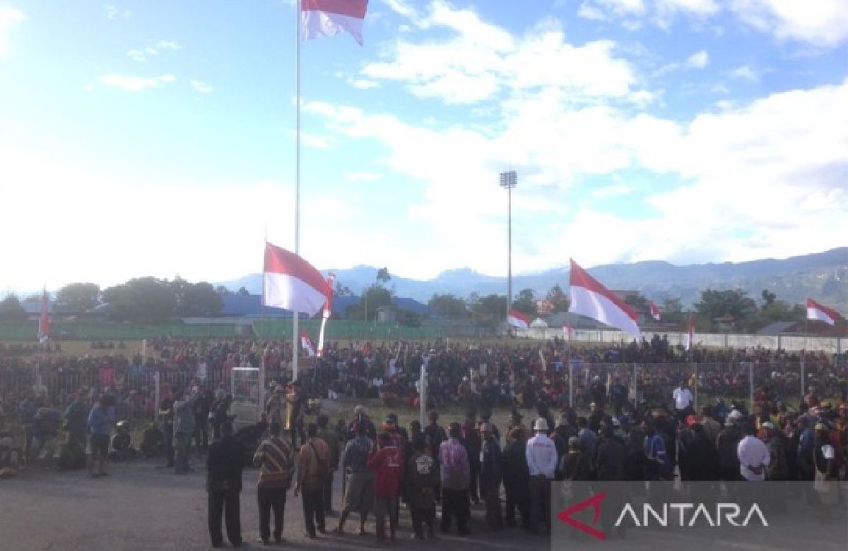 Metro Merauke – Warga Papua di Kabupaten Jayawijaya, Provinsi Papua, memadati Lapangan Pendidikan dan bersemangat mendengarkan pidato virtual Wakil Presiden Ma’ruf Amin dalam acara Deklarasi Papua Damai dalam peringatan Hari Lahir Pancasila, Rabu.