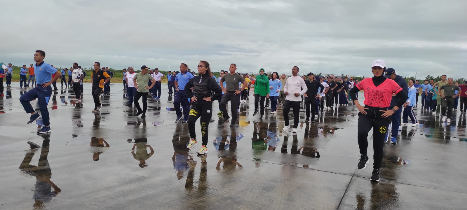 Kegiatan olahraga bersama yang diawali dengan senam SKJ 88 dihadiri langsung Pj Gubernur Papua Selatan, Apolo Safanpo.