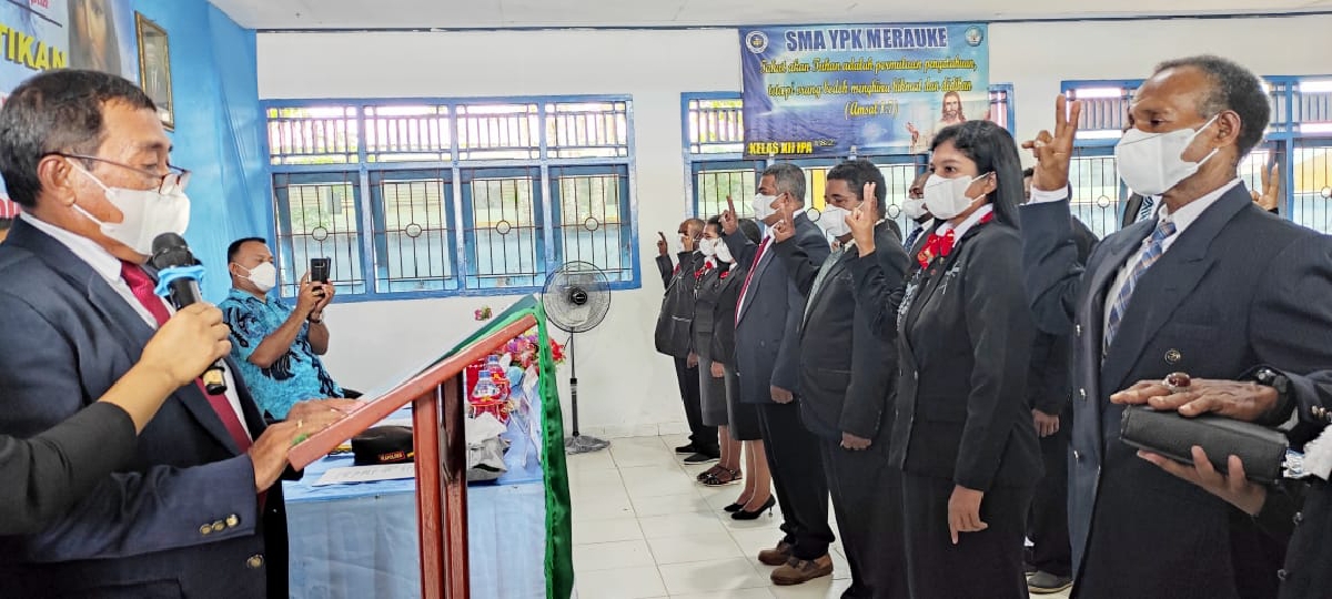 Metro Merauke – Ketua Badan Pengurus Yayasan Pendidikan Kristen (YPK) GKI di tanah Papua yang diwakili Direktur Eksekutif, Jan Ihalauw, melantik 15 kepala sekolah untuk tingkat TK, SD, SMP, SMA/SMK di lingkungan YPK Kabupaten Merauke, Papua pada Jumat (08/04/2022).